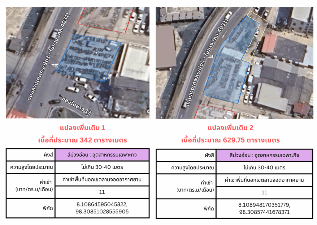 ที่ดินกรรมสิทธิ์ของ ทอท. ณ ท่าอากาศยานภูเก็ต (ที่ดินรับซื้อจากราษฎรที่ได้รับผลกระทบทางเสียงที่ NEF>40)