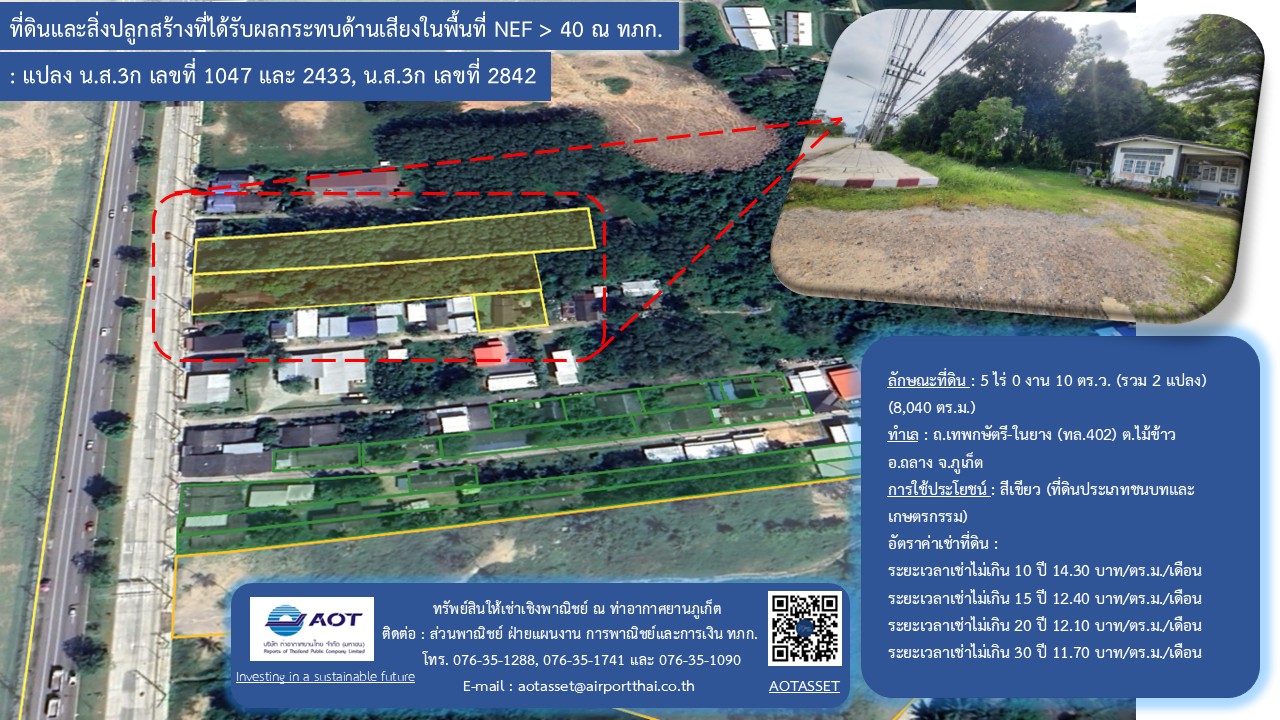 ที่ดินกรรมสิทธิ์ของ ทอท. ณ ท่าอากาศยานภูเก็ต (ที่ดินรับซื้อจากราษฎรที่ได้รับผลกระทบทางเสียงที่ NEF>40)